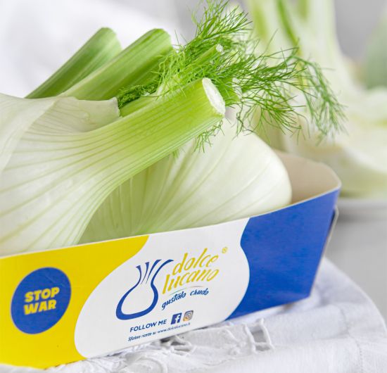 È arrivato in questi giorni sui banchi dei punti vendita Alì e Coop Consorzio Nord Ovest il finocchio Dolce Lucano nel nuovo packaging giallo e blu, che sostituendo il verde con i colori identificativi della bandiera dell’Ucraina vuole lanciare un messaggio di pace. Il restyling della confezione del finocchio premium di O.P. Primo Sole riguarda il vassoio da due frutti, contrassegnato dal nuovo bollino “No War”, che sostituisce quello con la dicitura “100% italiano”.